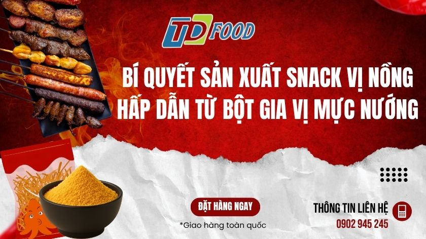 Thị trường snack hiện nay đang chứng kiến sự bùng nổ của những sản phẩm có vị đậm, thơm nồng và cá tính rõ rệt. Khách hàng, đặc biệt là giới trẻ, ngày càng ưa chuộng các loại snack mang hương vị mới lạ, mạnh mẽ, trong đó mực nướng là một trong những vị dẫn đầu xu hướng. Đáp ứng nhu cầu đó, bột gia vị mực nướng nổi lên như một giải pháp tối ưu cho các doanh nghiệp trong ngành F&B và sản xuất snack. Không chỉ dễ ứng dụng, loại gia vị này còn giúp sản phẩm đạt được hương vị đặc trưng, hấp dẫn và nhất quán trong từng lô hàng. Cùng TD Food tìm hiểu trong bài viết dưới đây.