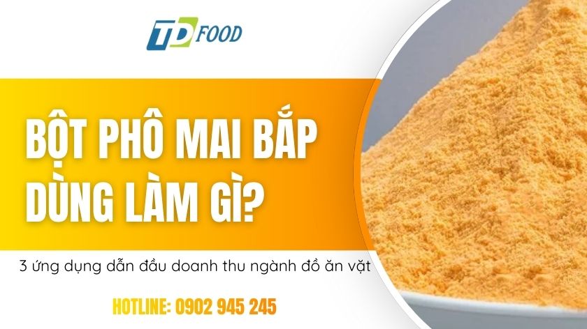 Trong ngành thực phẩm ăn vặt, bột phô mai bắp là một trong những loại gia vị được yêu thích nhất hiện nay. Hương vị béo nhẹ, thơm dịu và ngọt tự nhiên giúp sản phẩm trở thành “bí quyết tạo vị ngon” cho hàng loạt món snack, khoai chiên hay hạt rang tẩm vị. Nếu bạn đang thắc mắc bột phô mai bắp dùng làm gì, bài viết này của TD Food sẽ giúp bạn hiểu rõ hơn về loại bột này và cách ứng dụng hiệu quả nhất để gia tăng hương vị cũng như doanh thu cho sản phẩm.